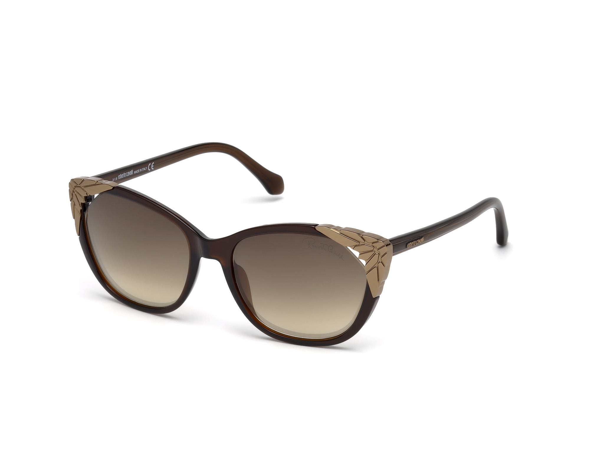 Occhiali da sole Roberto Cavalli Donna RC Castagneto 1034 Montatura allungata colore marrone e bronzo con lente marrone sfumata in acetato
