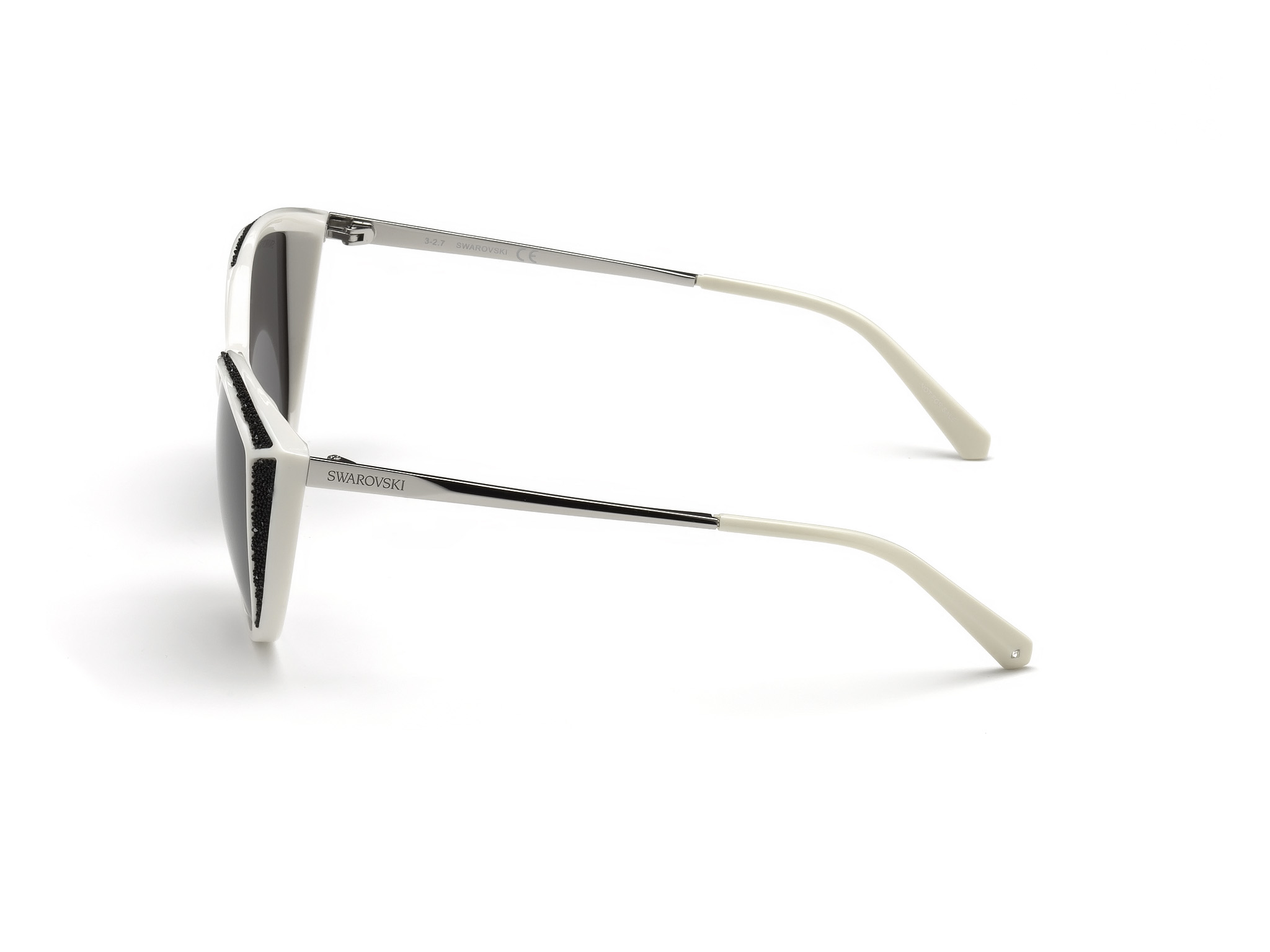 Occhiali da sole Swarovski Donna SK168 Montatura tonda colore bianco e nero glitterato con lente grigia in acetato