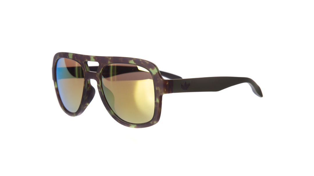 Occhiali da sole Adidas Uomo AOR.011 Montatura a goccia colore verde e nero maculata satinata con lente oro specchiata in acetato