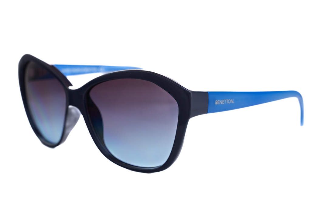 Occhiali da sole Benetton Donna BE936S Montatura a farfalla colore blu con lente grigio/azzurro sfumato in acetato