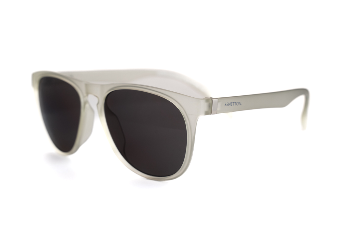 Occhiali da sole Benetton Uomo BE953S Montatura a goccia colore trasparente con lente grigia in acetato