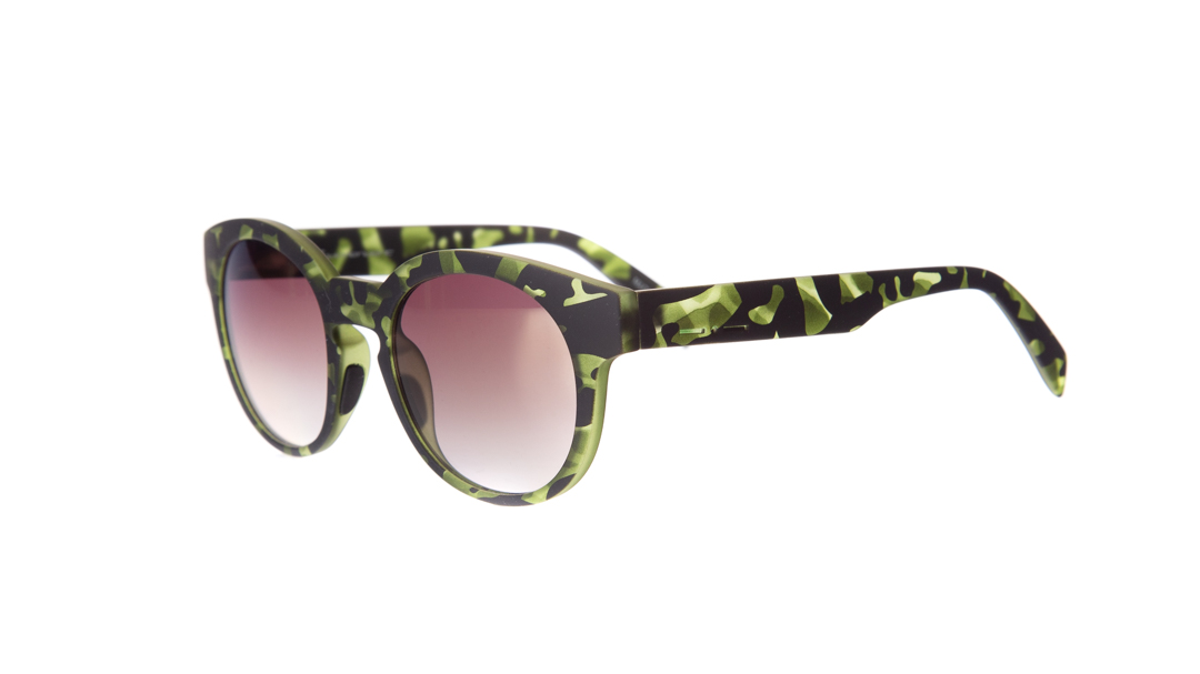 Occhiali da sole Italia Independent Uomo Donna 0909 Montatura tonda colore nero e verde maculata con lente marrone sfumata in acetato