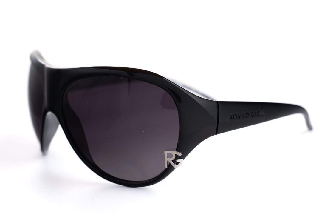 Occhiali da sole Romeo Gigli Donna RG697 Montatura a goccia avvolgente colore nero con lente grigio sfumato in acetato
