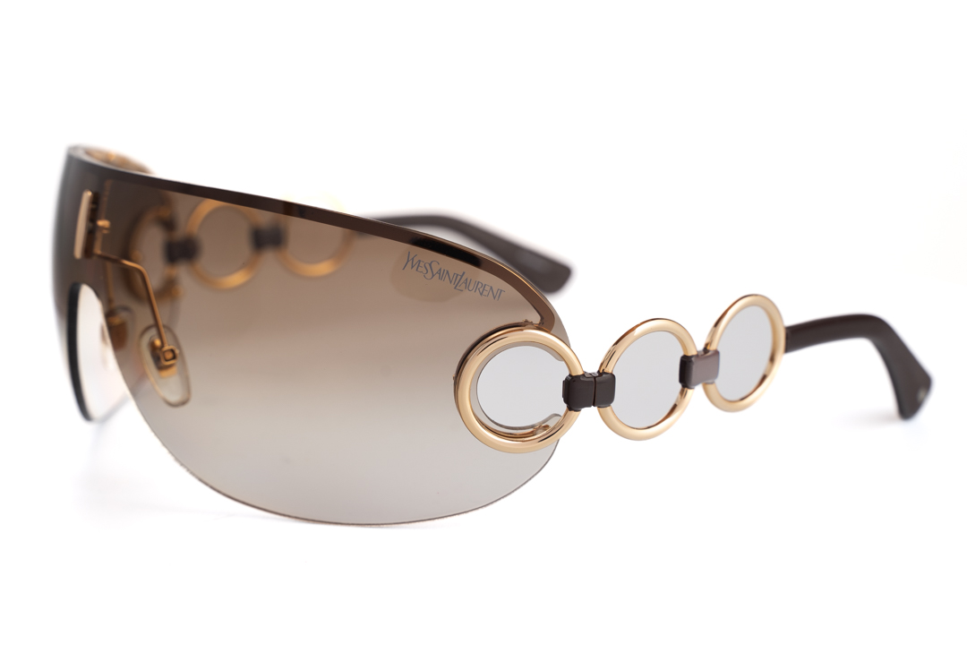 Occhiali da sole Yves Saint Laurent Donna YSL 6115/S Montatura a mascherina marrone e oro con lente marrone sfumato